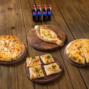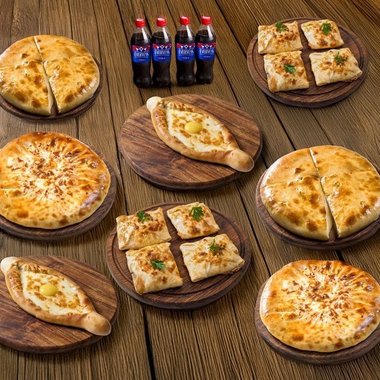 Ассорти Хачапури 2 ХХL 4 вида хачапури по два раза + 4 колы Evervess (1 л)